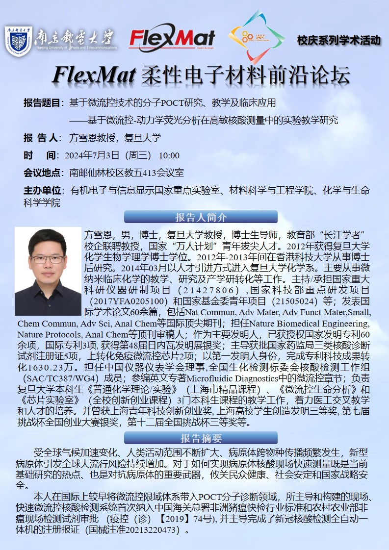 FlexMat柔性电子材料前沿论坛:复旦大学 方雪恩教授