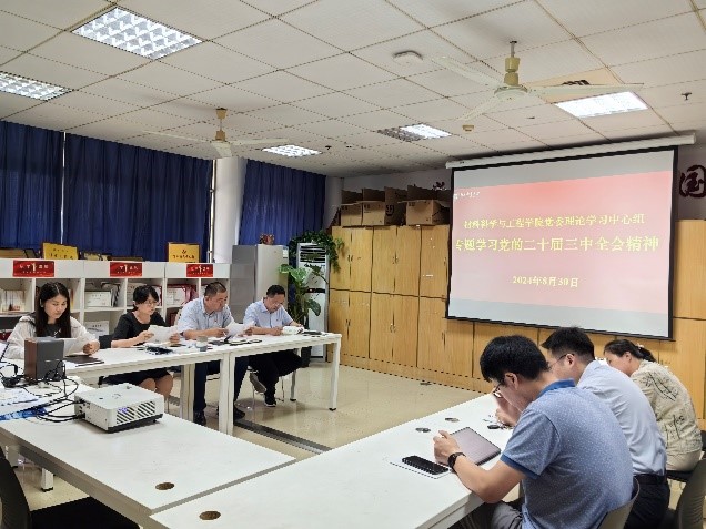 8月30日下午,腐漫画 党委理论学习中心组在材料学科楼101会议室召开专题学习会,专题学习党的二十届三中全会精神。会议由学院党委书记、党委理论学习中心组组长高志华主持。