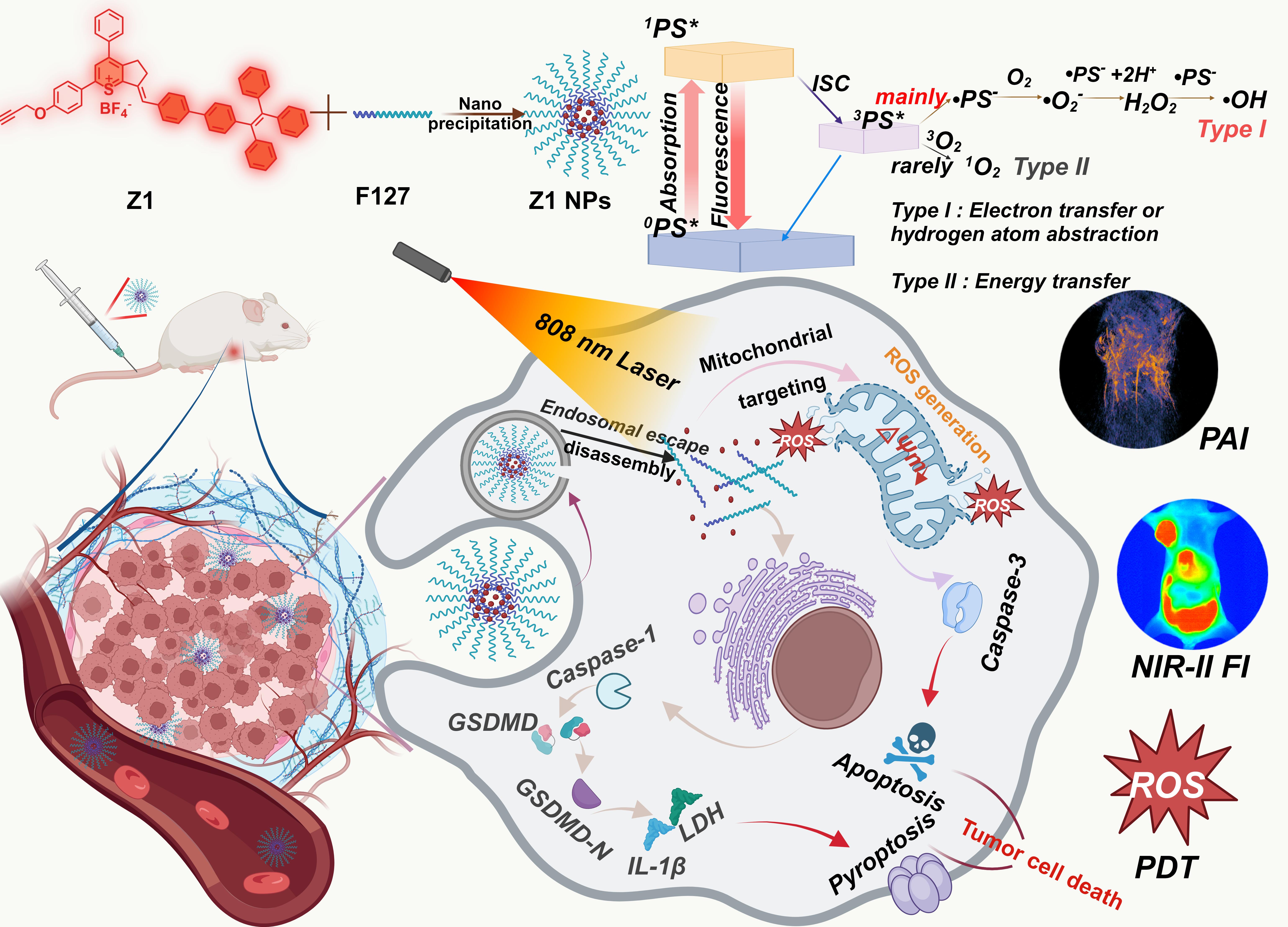 图1:NIR-II光敏剂Z1/Z1 NPs的合成及其生物应用示意图