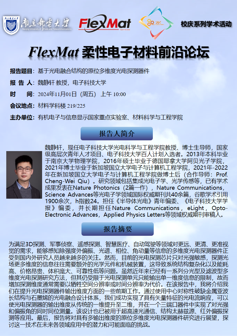 FlexMat柔性电子材料前沿论坛:电子科技大学 魏静轩教授