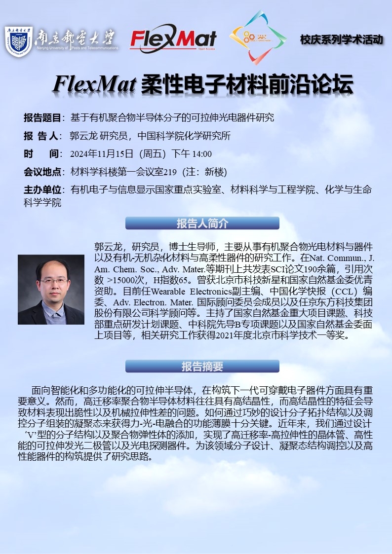 FlexMat柔性电子材料前沿论坛:中国科学院化学研究所 郭云龙 研究员