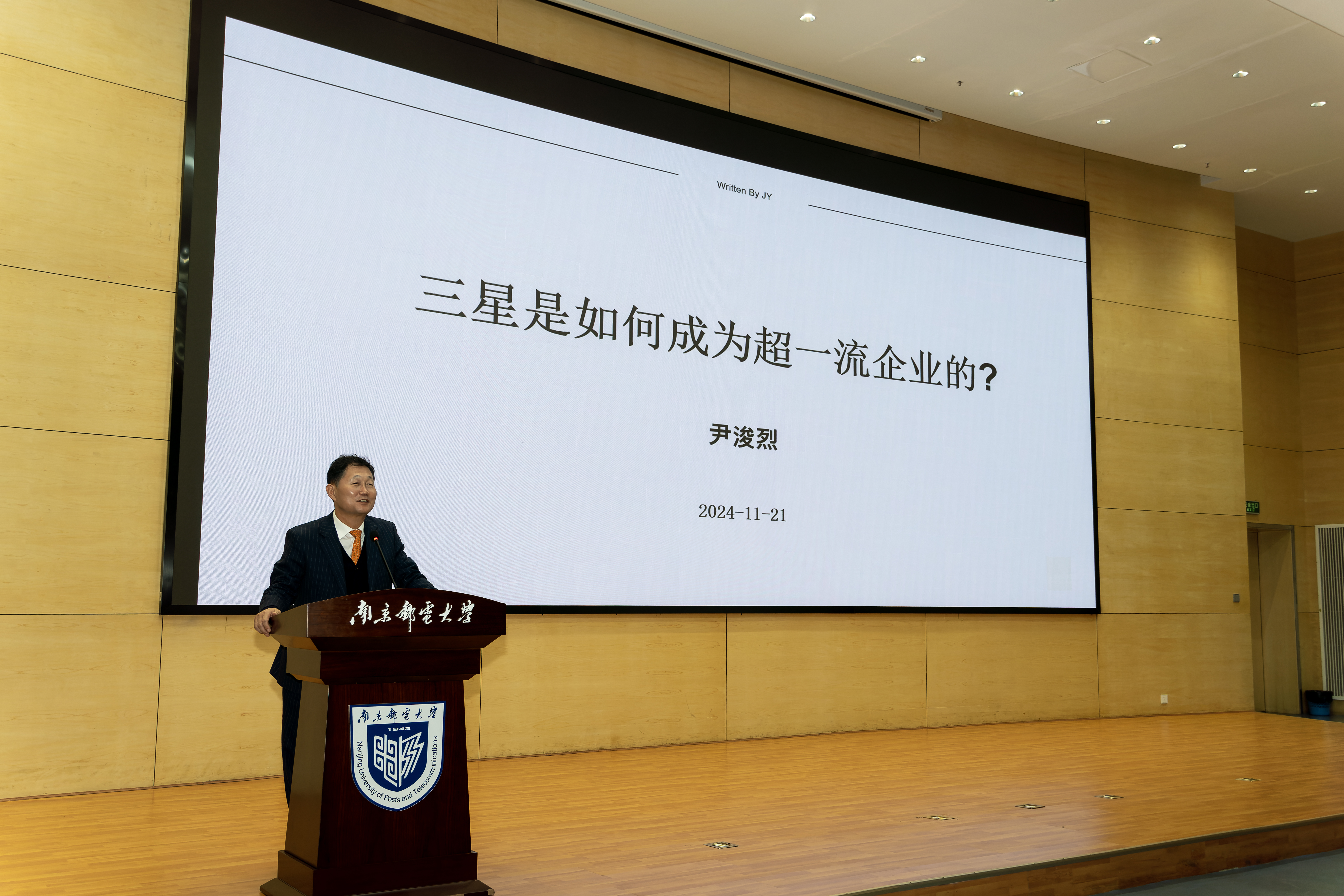 11月21日下午,由教务处主办、腐漫画 承办的腐漫画 “紫金大讲堂”--企业家讲座第一百四十八次活动在仙林校区图书馆运满满报告厅举行。韩国莱斯康电子株式会社董事长尹浚烈应邀为同学们做了题为“三星是如何成为超一流企业的”讲座。讲座由腐漫画 宋春元副院长主持。