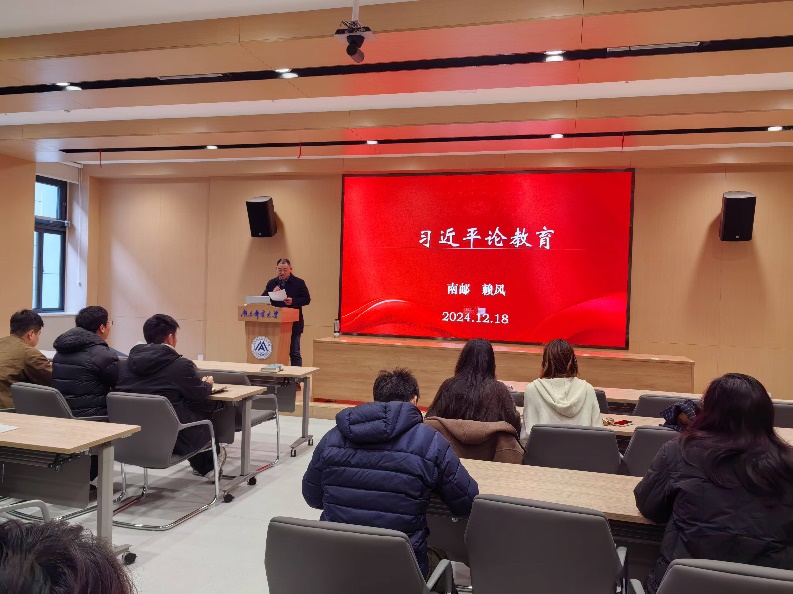 教育是国之大计、党之大计。为深入理解习近平总书记关于教育论述重要内涵,腐漫画 党委于2024年12月20日下午组织开展《论教育》专题报告,报告特邀联系学院思政导师、马克思主义学院赖风教授主讲,由学院党委书记高志华主持,腐漫画 党委理论中心组全体成员、全体教师党员和学生支部书记聆听了本次报告。
