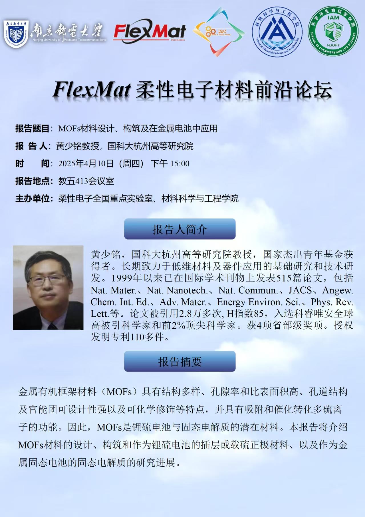 FlexMat柔性电子材料前沿论坛: 国科大杭州高等研究院 黄少铭 教授