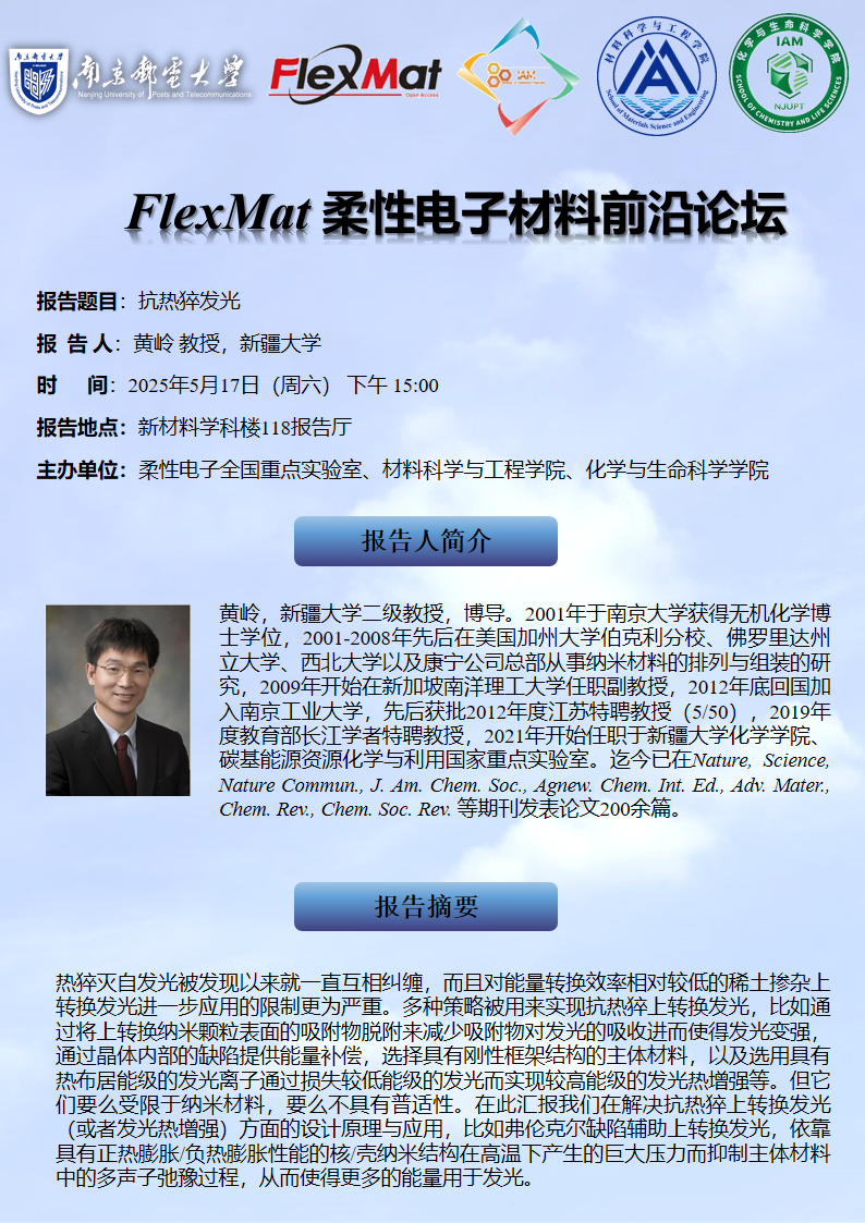 FlexMat柔性电子材料前沿论坛:新疆大学 黄岭 教授