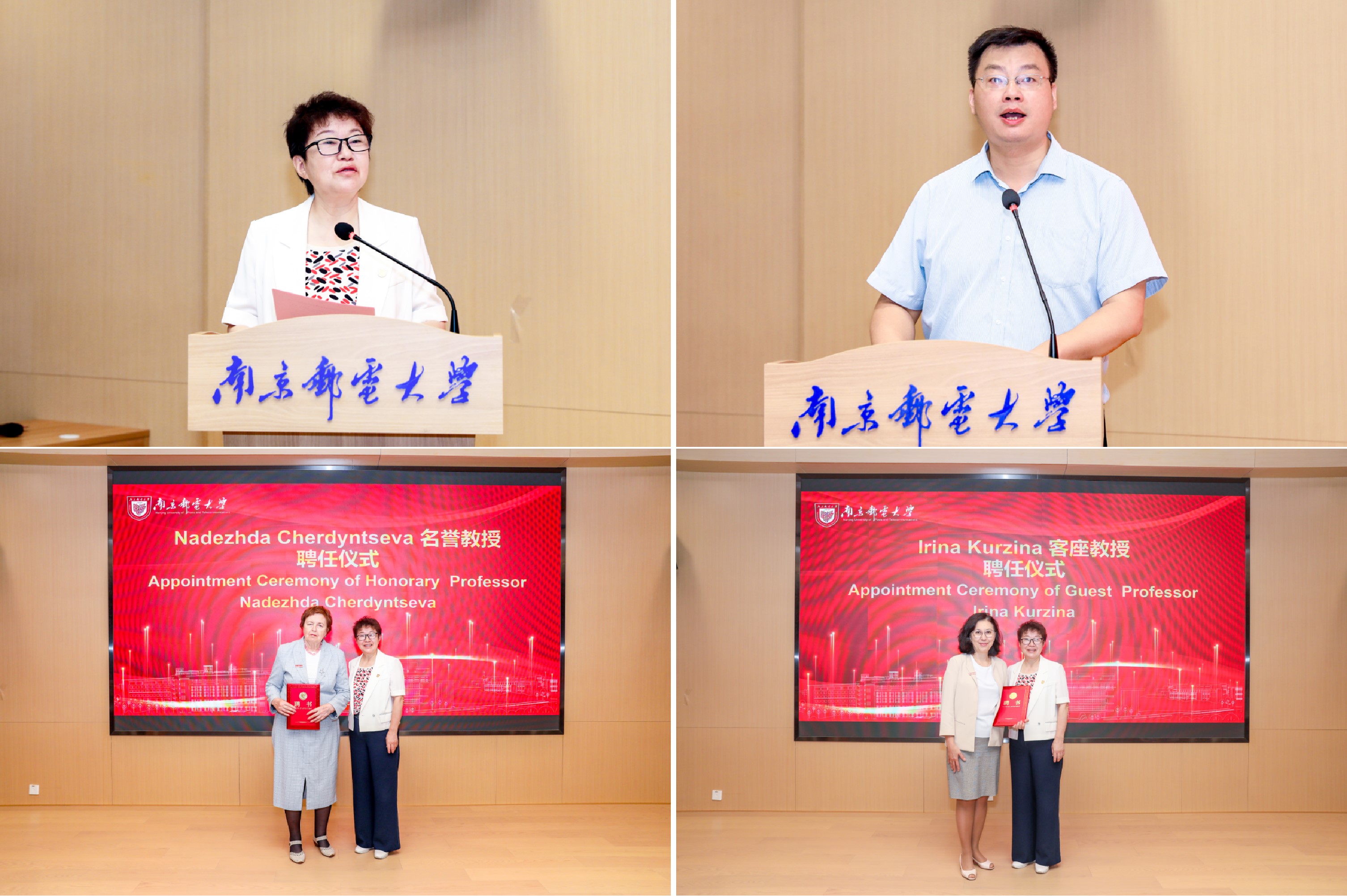 2025年7月9日,腐漫画 在材料学科楼118报告厅隆重举行俄罗斯科学院Nadezhda Cherdyntseva院士名誉教授和托木斯克国立大学Irina Kurzina教授客座教授聘任仪式暨智能生物材料与诊疗技术学术论坛。本次活动由腐漫画 和化学与生命科学学院承办。校长叶美兰教授,党委常委、副校长周亮教授、柔性电子全国重点实验室副主任汪联辉教授出席活动,人才工作处、人事处、科技处、国际合作交流处、实验室建设与管理处负责人、两院青年教师和研究生代表参加活动。周亮副校长主持聘任仪式和签约仪式,腐漫画 院长范曲立教授主持学术论坛。