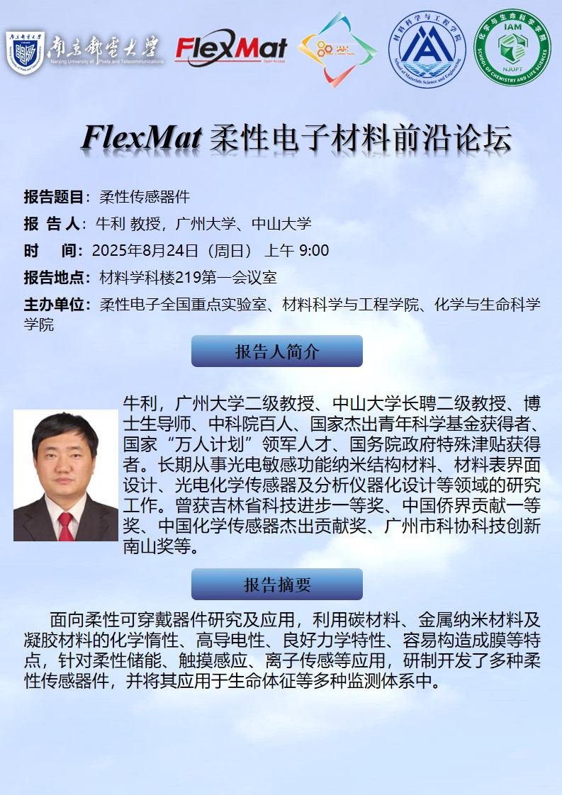 FlexMat柔性电子材料前沿论坛:广州大学、中山大学 牛利 教授