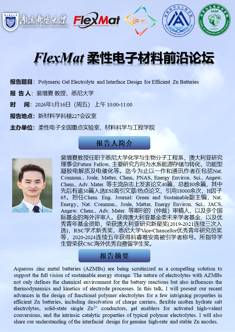 FlexMat柔性电子材料前沿论坛:悉尼大学 裴增夏教授